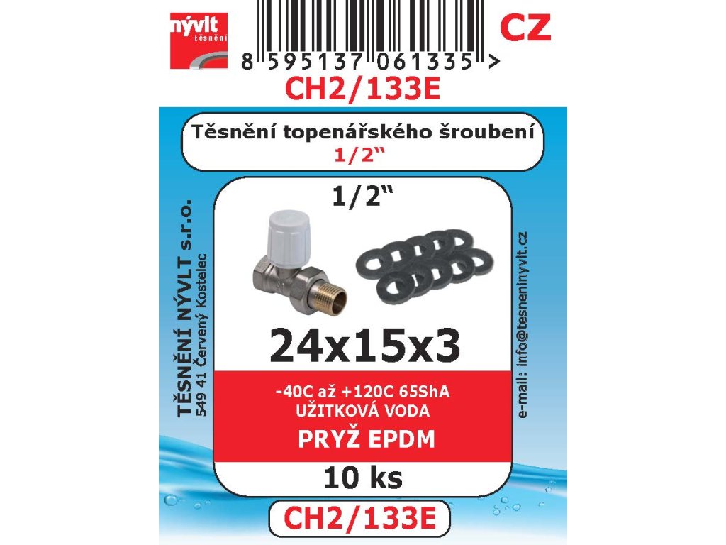 Těsnění topení 1/2" ploché; pryž EPDM 24x15x3 mm CH2/133ETechnické parametry: