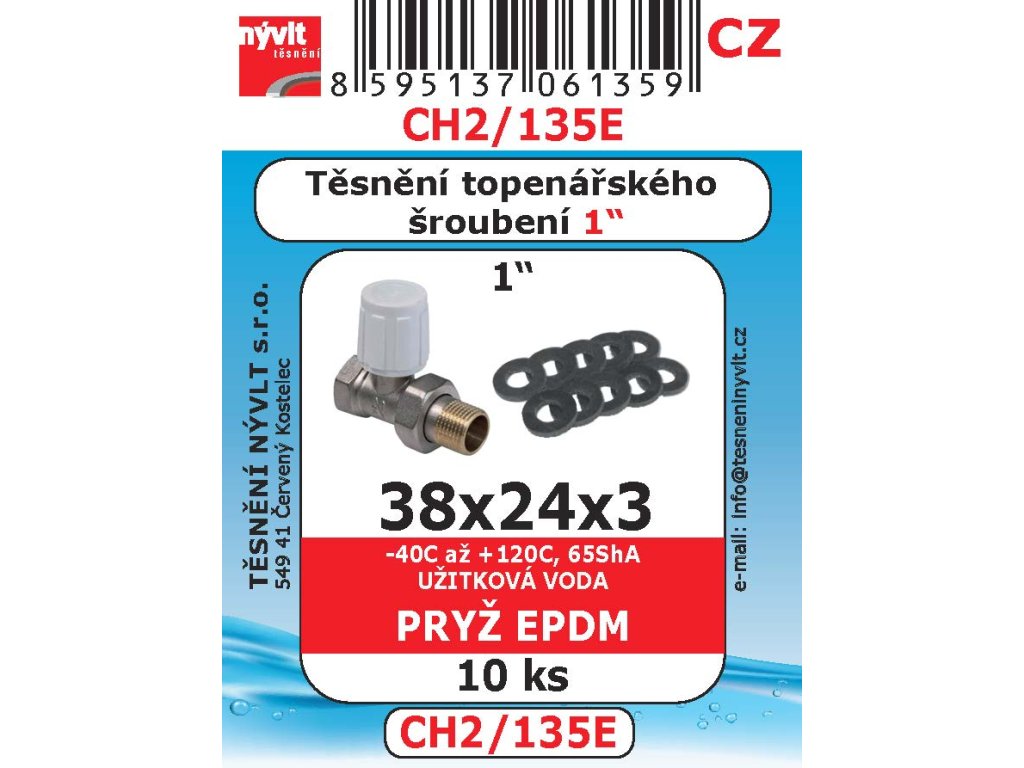 CH2/135E SADA 38x24x3 1" ventil top šroubení pryž EPDM 10ks už