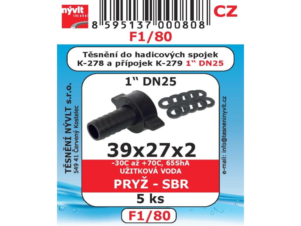 F1/80 SADA 39x27x2 těsnění hadicových spojek DN25 pryž SBR 5ks