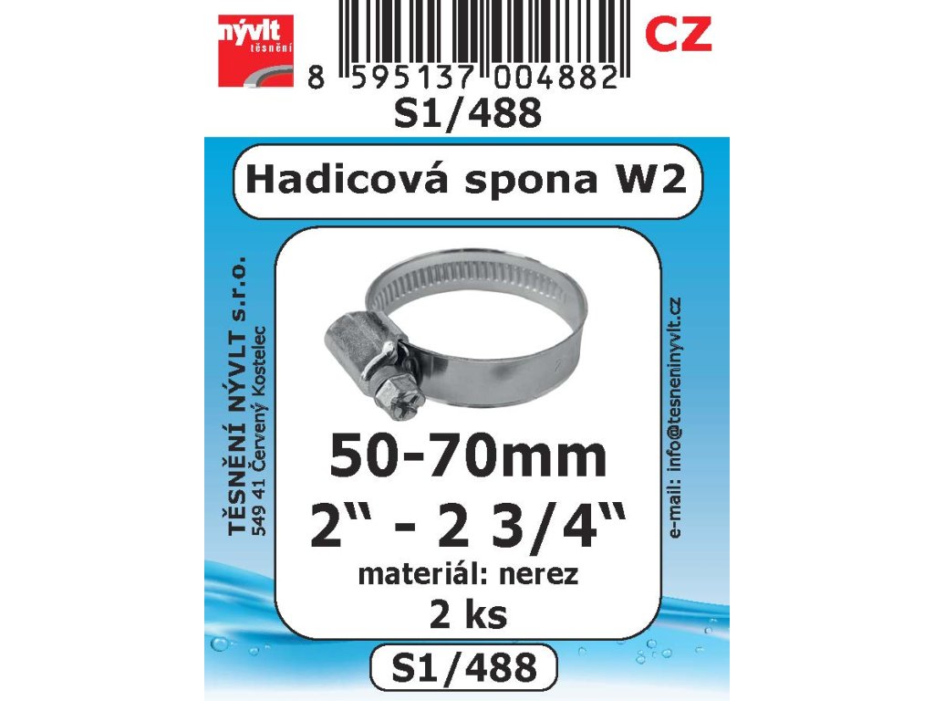 S1/488 SADA 2"-2 3/4" hadicové spony nerez 50-70mm 2ks